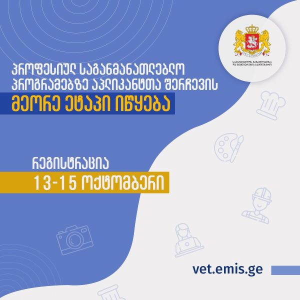 პროფესიულ საგანმანათლებლო პროგრამებზე აპლიკანტთა შერჩევის მეორე ეტაპი იწყება!