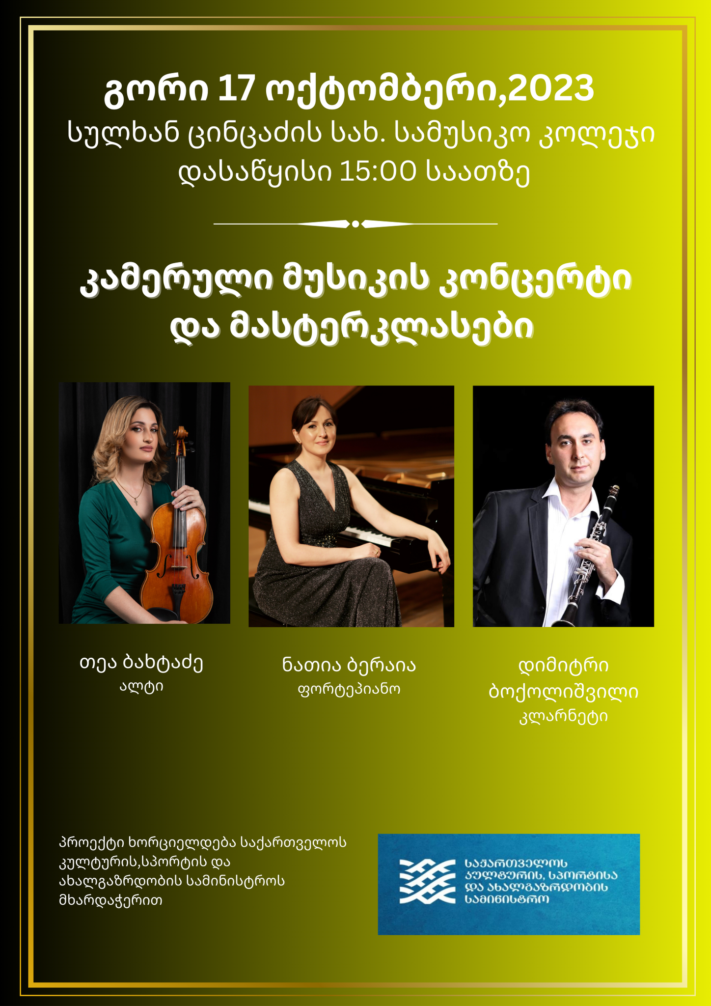 ქ.გორის სულხან ცინცაძის სახელობის სამუსიკო კოლეჯის დიდ საკონცერტო დარბაზში გაიმართება ,,კამერული მუსიკის კონცერტი და მასტერკლასები''