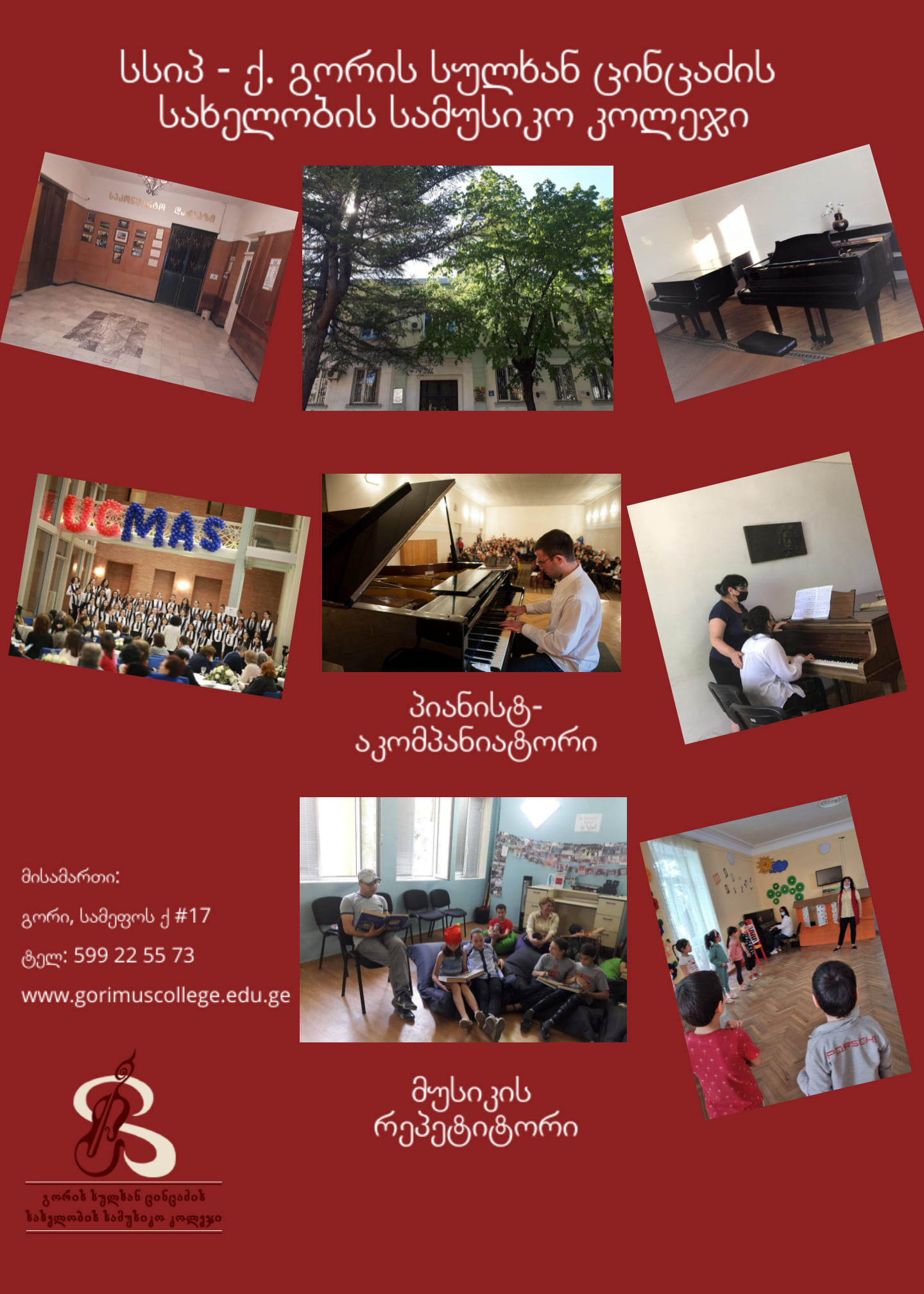 სსიპ-ქ.გორის სულხან ცინცაძის სახელობის სამუსიკო კოლეჯი აცხადებს მიღებას შემდეგ პროფესიულ საგანმანათლებლო პროგრამებზე: